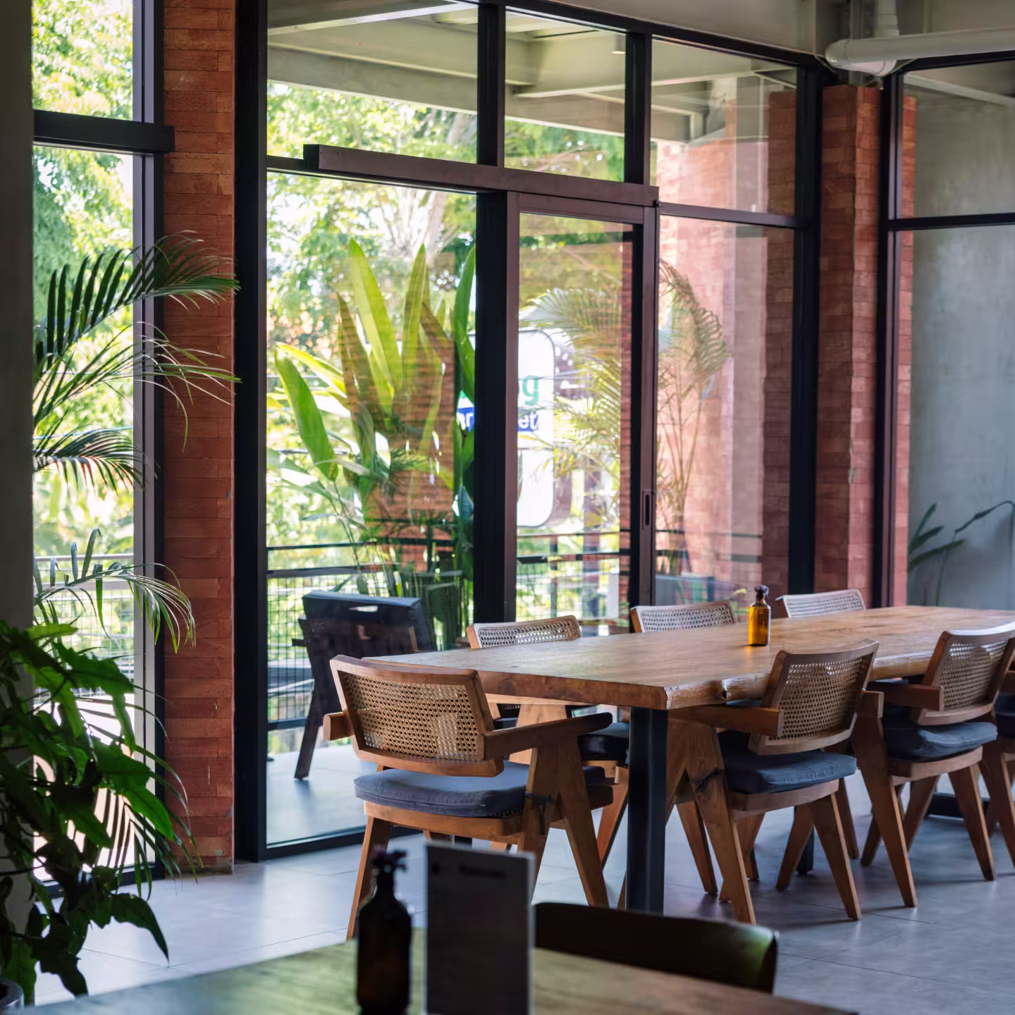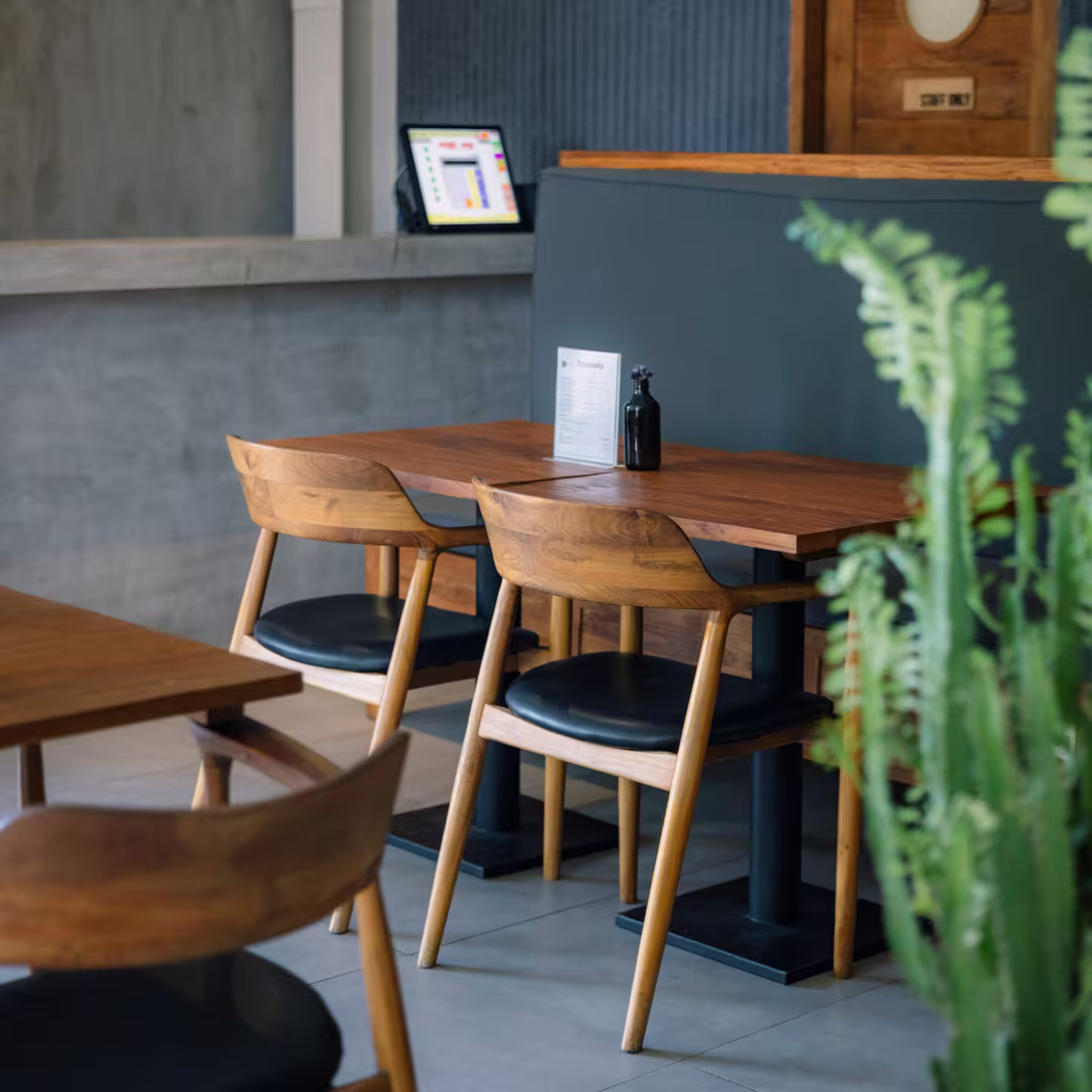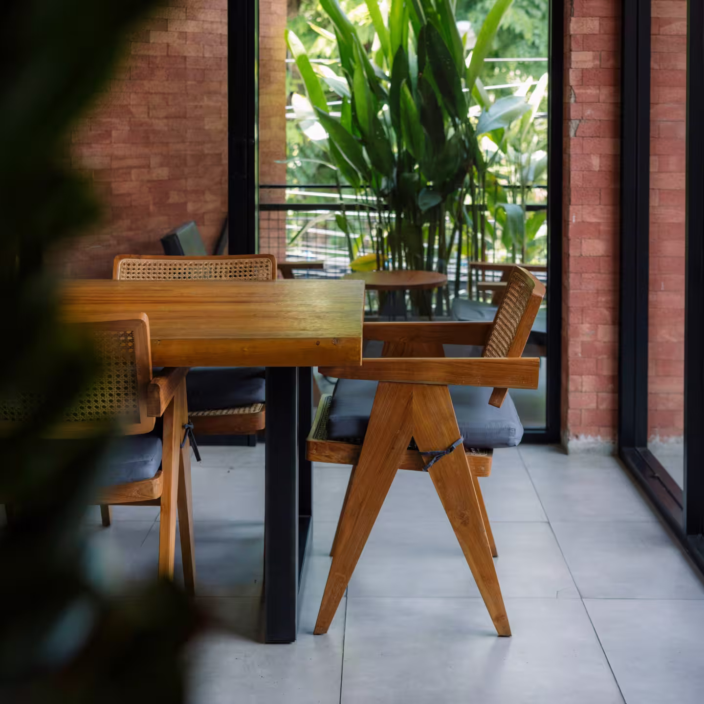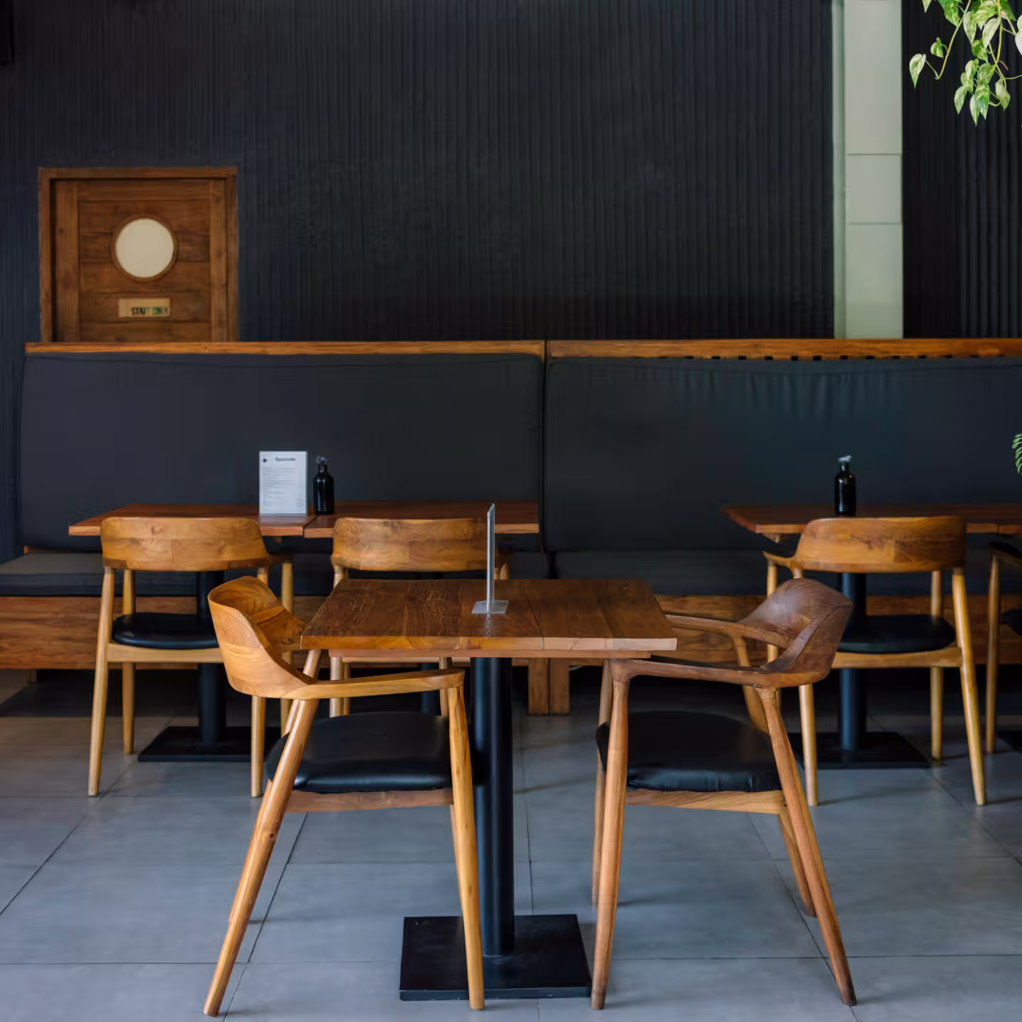 • Two smaller tables with two chairs each (4 guests total)